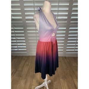 NEW Halter Dress Large Purple Ombre Backless Lightweight Cut Outs Fit Flare