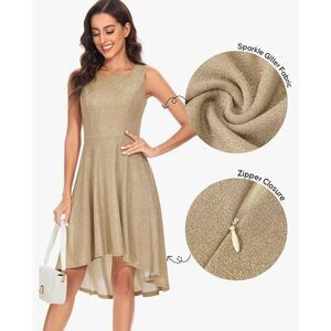 [Feature] Glitter, sleeveless, round neck, a-line, high-low hem, regular fit, flared flowy skirt, skater dress, back zipper. You will never regret to get one!