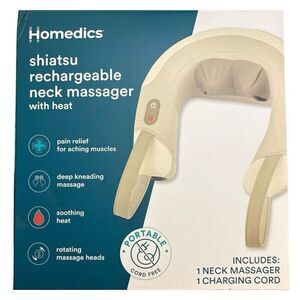 NEW HoMedics Shiatsu Rechargeable Neck Massager Heat Deep-Kneading Shiatsu Massage, Integrated Controls Cordless Relaxes Muscle Tension Releases Sore Muscles Comfort-Flex Handles New In Box