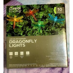 NEW IN BOX REAL LIVING DRAGONFLY SOLAR LIGHTS SET OF 3
