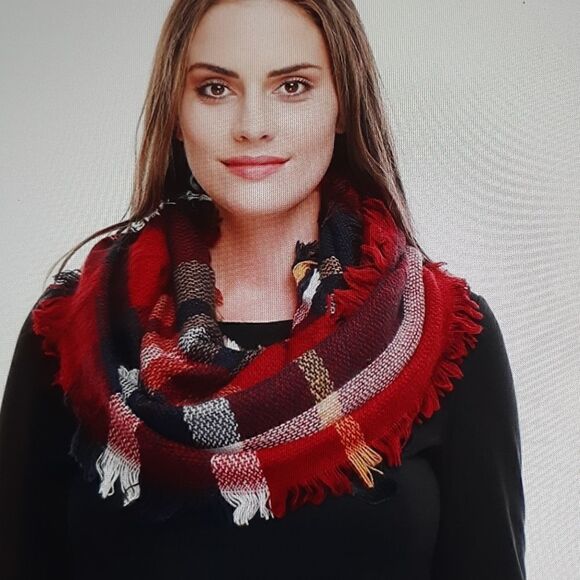 NEW Infinity Scarf Navy/Burgundy Plaid Winter Women's