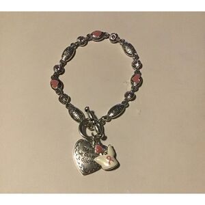 NEW~Inspirational Silver Pink Ribbon~Angel~Hearts Charm Toggle Bracelet