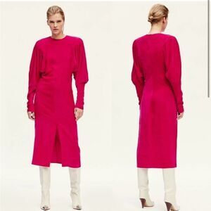 NEW Isabel Marant Venia Corduroy Midi Dress Fuschia Hot Pink Size 36 Small