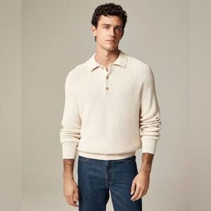 NEW J CREW Ribbed heritage cotton sweater-polo in Natural