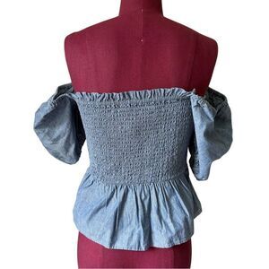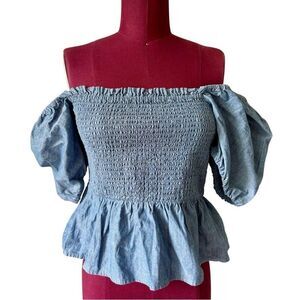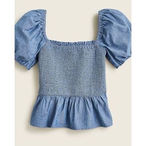 NEW J. Crew Squareneck smocked chambray top size M Blue