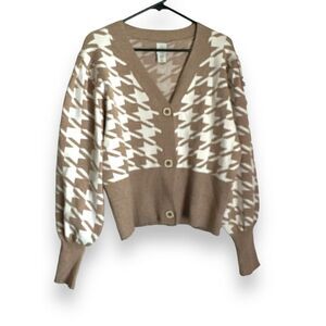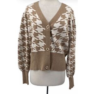 NEW JOIE long sleeve houndstooth cozy soft button front cardigan sweater sz M