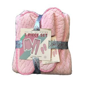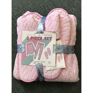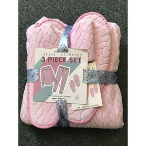 NEW Jaclyn Intimates Fleece Top Leggings Slippers Pink 3 Piece Women Pajama Set.