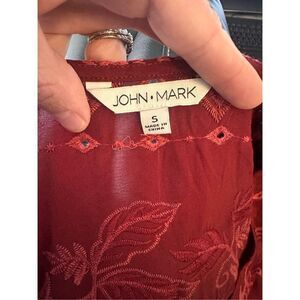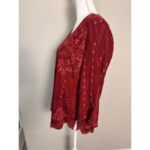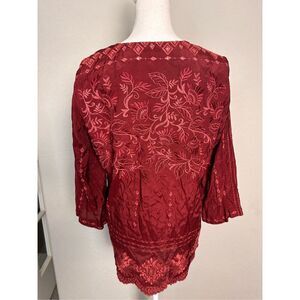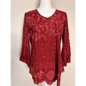 NEW John Mark deep red wine Embroidered Tunic Top Blouse Small excellent condition