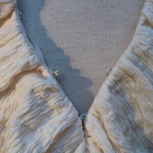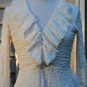 NEW Joy Folie Mia Joy Alisha in Gardenia Ivory Crinkle Stretch Ruffle V-Neck Bohemian Dress