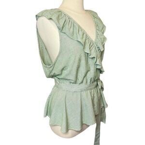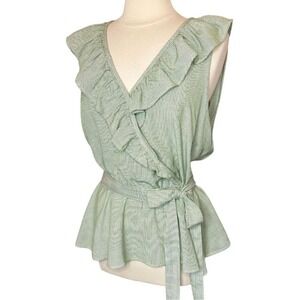 NEW‼️LAUREN CONRAD Pinstripe Ruffle Peplum Sleeveless Top w/ Belt, 1X