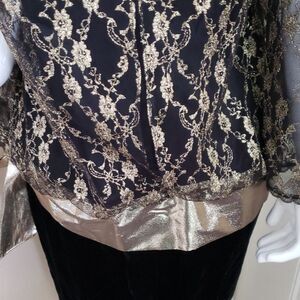 Black velvet skirt with gold lace long sleeve overlay