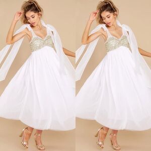 Party dress features a sweetheart neckline formed by its functional self-tie straps, and ruffle bust, a sequin chest detail, empire waistline accenting its multi-layered tulle skirt, functional pockets, and an invisible side zipper.