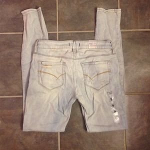 Destroyed light wash jeans! Never been worn before! Run a little small that's is why they did not fit me! So cute and perfect for spring!