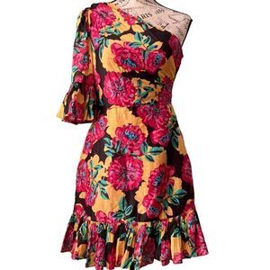 NEW La Maison Talulah One Shoulder Floral Ruffled Mini Dress in Size Small