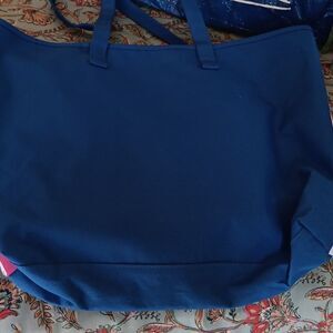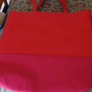 Perfect for daytrips, weekends or shopping. Floral has a canvas finish. Orange and hot pink is water resistant poly. Both lined. Both measure 17 wide, 3.5 deep, 13 high(canvas), 15 high (orange). 9 inch drop from handles. These are NEW. Put a gift inside for a special friend.