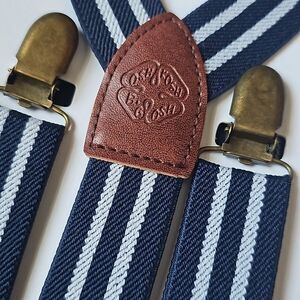 New navy and white stripe suspenders. Smoke/pet free home. BUNDLE AND SAVE.
