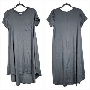 NEW LuLaRoe Carly Dress S (6/8) Solid Gray Slub Jersey Knit Midi Pocket Hi-Low