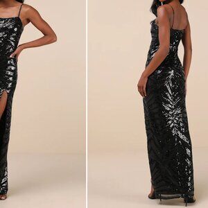 (NEW)Lulus Glimmering Beauty Black Sequin Sleeveless Column Maxi Dress - Size XS
