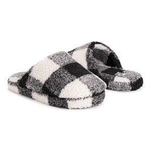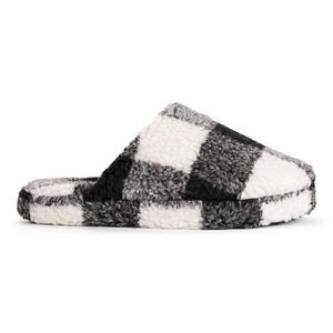 NEW! MUK LUKS Black White Buffalo Plaid Check Slip On Slippers Checked Cozy Soft