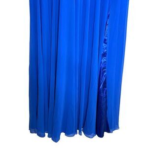 NEW Mac Duggal Royal Blue V-Neck Illusion Long Sleeve Chiffon Gown 20