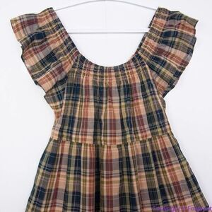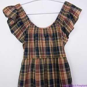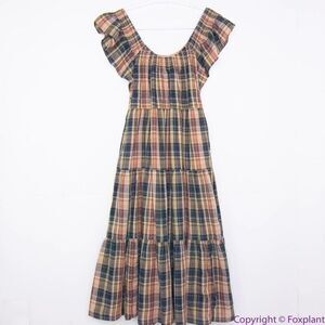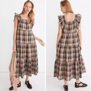NEW Madewell Flutter-Sleeve Tiered Midi Dress in Plaid, M