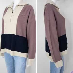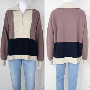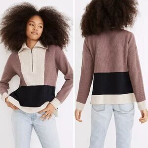 NEW Madewell Glenbrook Half-Zip Colorblock Pullover Sweater, M