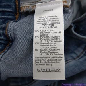 73% cotton/16% poly/10% rayon/1% elastane denim.