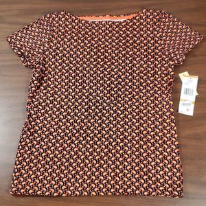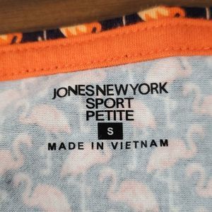 NEW NWT Jones New York Flamingo Cap Sleeve Classic Navy Combo Shirt Small Petite