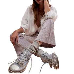 NEW Nan-Ku Free People High Top Sneaker Rhinestone Studded Mauve Size 6.5-7