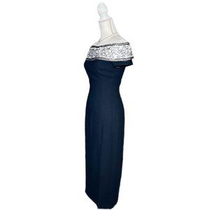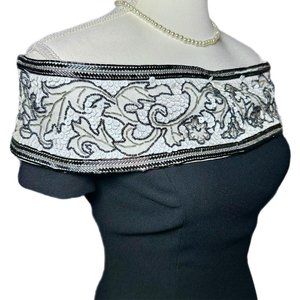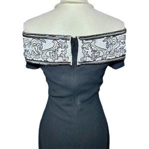 NEW/Never Worn Vintage Cache Classic Hollywood Off-The-Shoulder Black & White Beaded Gown