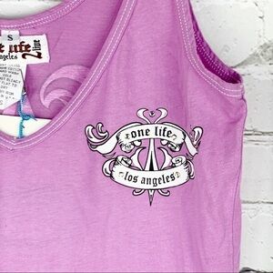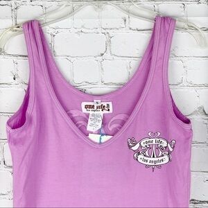 Brand New. With all tags. Lovely Lavender -purple color with white embellishments. Deep V neck Tunic tank. Tattoo print with One Life Los Angeles written at the back. . Swarovski crystals and stones embellished. Celebrity favorite LA Brand.