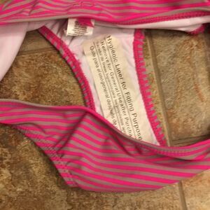 NWOT (hygiene liner and attached) full coverage OP bikini bottom. Gray and hot pink.