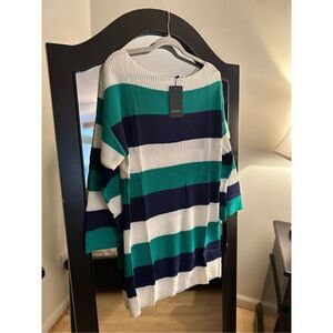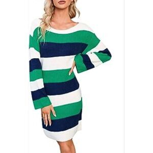 NEW Off The Shoulder Loose Sweater Dress Color Block M