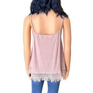NEW POL Mauve Pink Crochet Lace Embroidered Fringe Tank Top