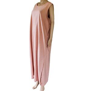 DRESS: Sleeveless · Maxi, Long · Bust Darts · Pockets · Side Vents · Two Extra Buttons (One Clear) · Decorative Tabs with Buttons on Back · Approximate Measurements: Shoulder to Shoulder 16", Chest 46", Waist 48", Hip 52", Length 53", Arm Opening 24"