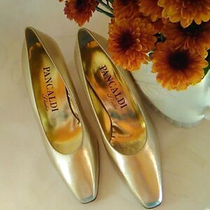 NWOT Gorgeous designer heels in metallic gold leather. Never worn so you can take them to their first party! Size 8B measures 3 wide, 10.5 long and 2.75 heel. In original box.