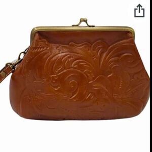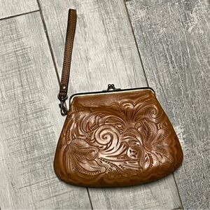 NEW Patricia Nash Savena Brown Tan Leather Vintage Tooled Snap Close Wristlet