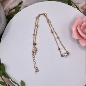 Dainty faux pearl gold tone necklace. Length is 15” long with a 2.5” extender. Great for everyday wear.