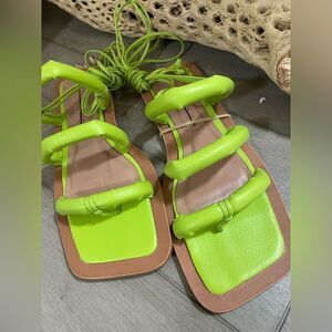 NEW People Vicenza Belize Wrap Sandals Neon Green size 7 Square Tie B15