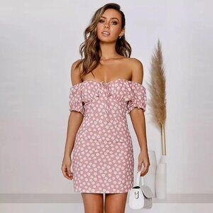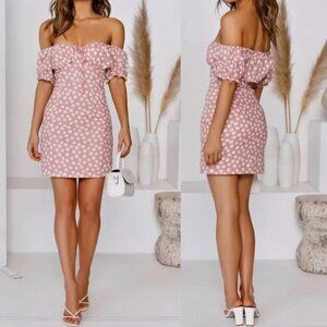 NEW! Pink “Daisy Doll” Floral Print Puff Sleeve Mini Dress