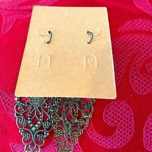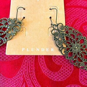 NEW Plunder Antique Gold Lace Earrings Approx 4" length Metal Super Cute!