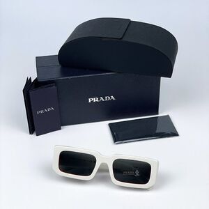 NEW Prada PR06YS 17M5S0 Talc Orange Dark Grey Rectangle Unisex Sunglasses