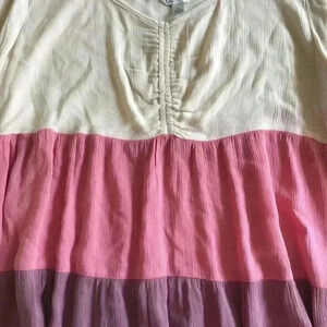 Cream-Pink-Purple-Textured Baby doll Blouse-Womens SZ Large