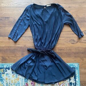 Ramy Brook Navy mini dress with studded sleeves and belt tie