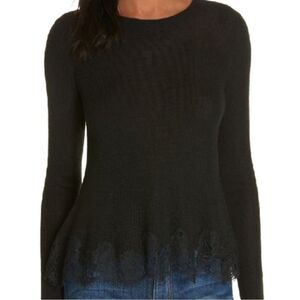 NWT REBECCA TAYLOR Lace Trim Wool Blend Sweater