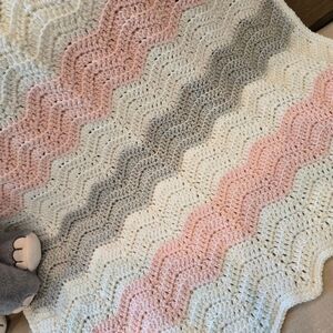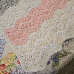NEW RIPPLE BABY BLANKET HAND-CROCHETED BY SELLER Large 40 X 30 Inch