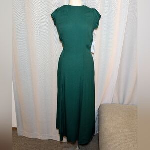 NEW Reformation Gavin Dress Emerald Green Midi Size 0 Open Back Short Sleeve