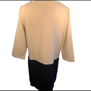 NWT Riva Club color block shift dress with overall stretch, two open front pox lined in yellow for a pop of color and a shoulder zip closure. Armpit-to-armpit 22”, sleeve 19”, length 38” and waist 44”.