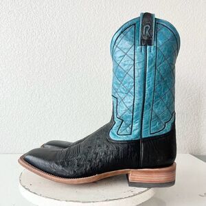 Rod Patrick Custom Bootmakers Mens Cowboy Boots - Black Smooth Ostrich Leather with a Teal Blue Shaft - RPM125