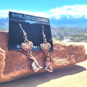 Brand New, Great Gift! Rustic Copper Cheetah Jaguar Dangle Heart Earrings